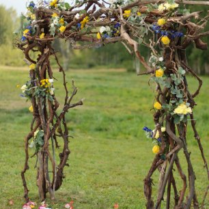 Прочая свадебная флористика должна гармонировать и с букетом невесты, и с декором свадьбы, её стилем и концепцией. К примеру, если вы делаете свадьбу в стиле рустик, то розы будут выглядеть здесь несколько странно. Но хороший флорист всегда найдёт выход и предложит вам альтернативу: если уж вы так хотите именно розы, то используйте в декоре кустовые, они очень мило смотрятся и не разрушат рустикальную тематику.